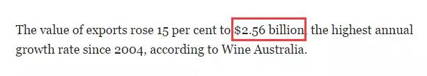 2017年澳洲葡萄酒的世界出口总量较往年增长了15%,达到25.6亿澳元。